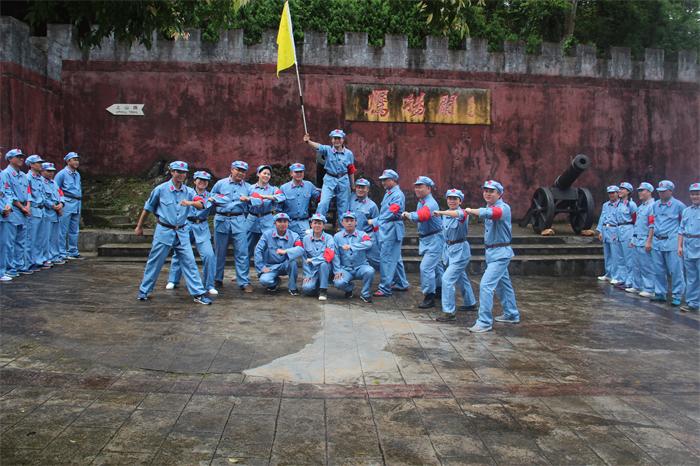 在紅七軍廣場,我們開展了拓展培訓比武。四個縱隊分別選出自己的隊長和政委,在規(guī)定的時間內確定隊名、隊徽、口號、隊形并進行操練。經過一番謀劃,雄鷹隊、陽光隊、飛鷹隊、鐵軍隊騰空出世。接下來便是登場亮相,首先上場的是鐵軍隊,在一番隊形變換后,喊出了“城投鐵軍,永奪冠軍”的口號震撼大地。