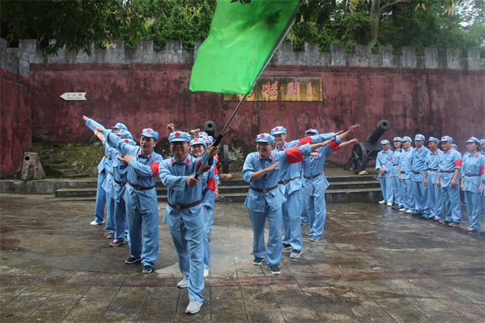 “七一”前夕,城投集團全體黨員身穿紅軍裝,頭戴紅軍帽,腰系紅軍帶,分乘兩部大巴,雄赳赳氣昂昂前往鷹揚關。
