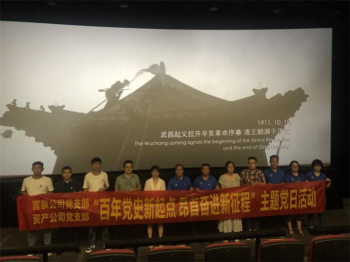 觀展結(jié)束后,為進一步引導(dǎo)黨員干部重溫黨史、傳承精神、洗滌初心、勇?lián)姑愿訆^發(fā)有為的精神狀態(tài)履行為民服務(wù)的初心,擔(dān)負(fù)起新時代職責(zé)使命。富泉公司黨支部、資產(chǎn)公司黨支部全體黨員一同走進電影院,觀看了紅色電影《1921》。該影片以時代“橫截面”視角切入,聚焦1921年前后的故事,全景式重現(xiàn)了百年前波瀾壯闊、開天辟地的歷史時刻,講述了一群來自五湖四海平均年齡僅28歲的熱血青年們,突破國際各股復(fù)雜勢力的監(jiān)控和追蹤,聚集上海召開中國共產(chǎn)黨第一次代表大會,見證了中國共產(chǎn)黨成立的歷史故事。這次觀影是一次令思想靈魂經(jīng)受洗禮的生動黨史學(xué)習(xí)教育課,對于黨員體悟建黨的艱辛歷程,堅定理想信念,重溫入黨初心有著極為重要的意義。