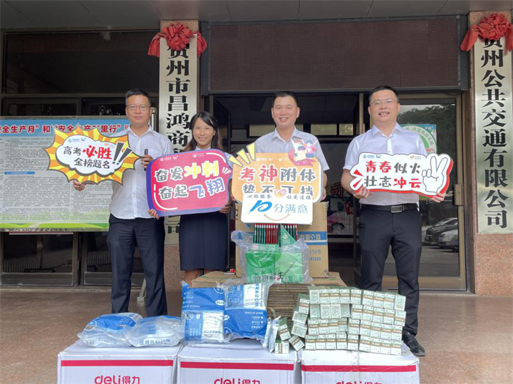 為確保考生能夠順利進行考試,公交公司聯(lián)合賀州移動公司,準備了“愛心助考物資”箱,內(nèi)放置2B鉛筆、口罩、風(fēng)油精、文具袋、扇子等考生必備的應(yīng)急物資,以供考生應(yīng)急使用。