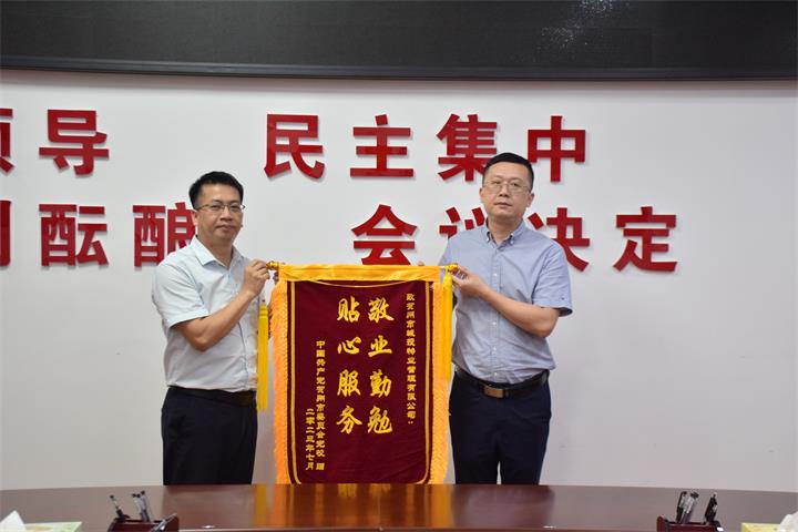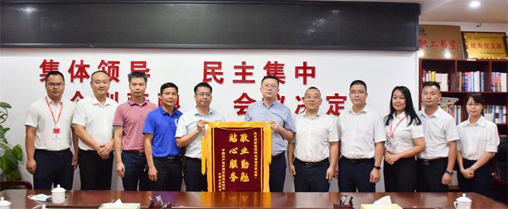 7月12日下午,賀州市市委黨校副校長唐永波一行來到城投集團,將一面印有“敬業勤勉 貼心服務”的錦旗和感謝信送到了城投集團黨委委員、副總經理陳桂軍手中,為城投物業公司高質量服務點贊。