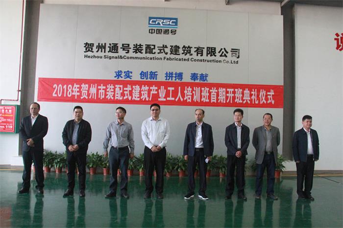 2018年賀州市裝配式產業工人培訓班首期開班典禮在賀州市通號實訓基地舉行。
