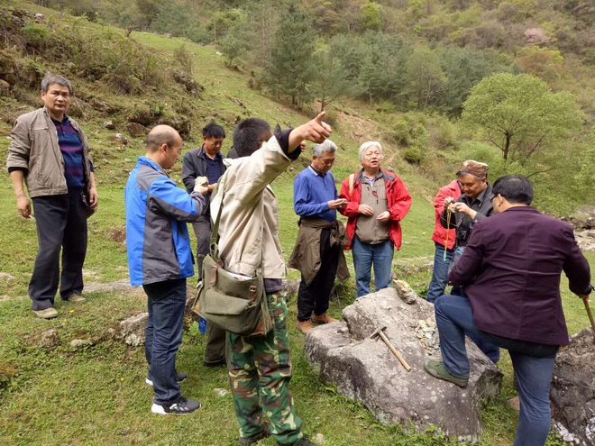 在驗收期間,專家組在詳細(xì)聽取了項目負(fù)責(zé)趙西鋒關(guān)于項目野外工作情況匯報后,重點對發(fā)現(xiàn)的金礦化點和兩條晶質(zhì)石墨、金紅石、矽線石礦帶進(jìn)行了實地檢查驗收。
